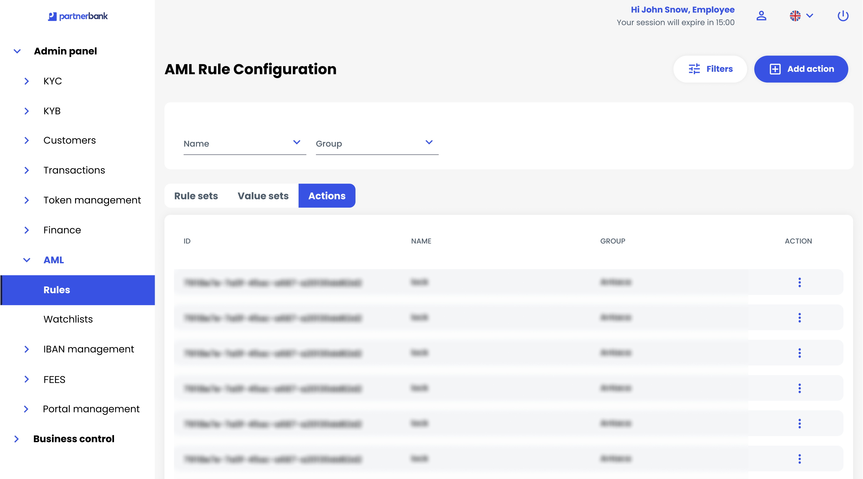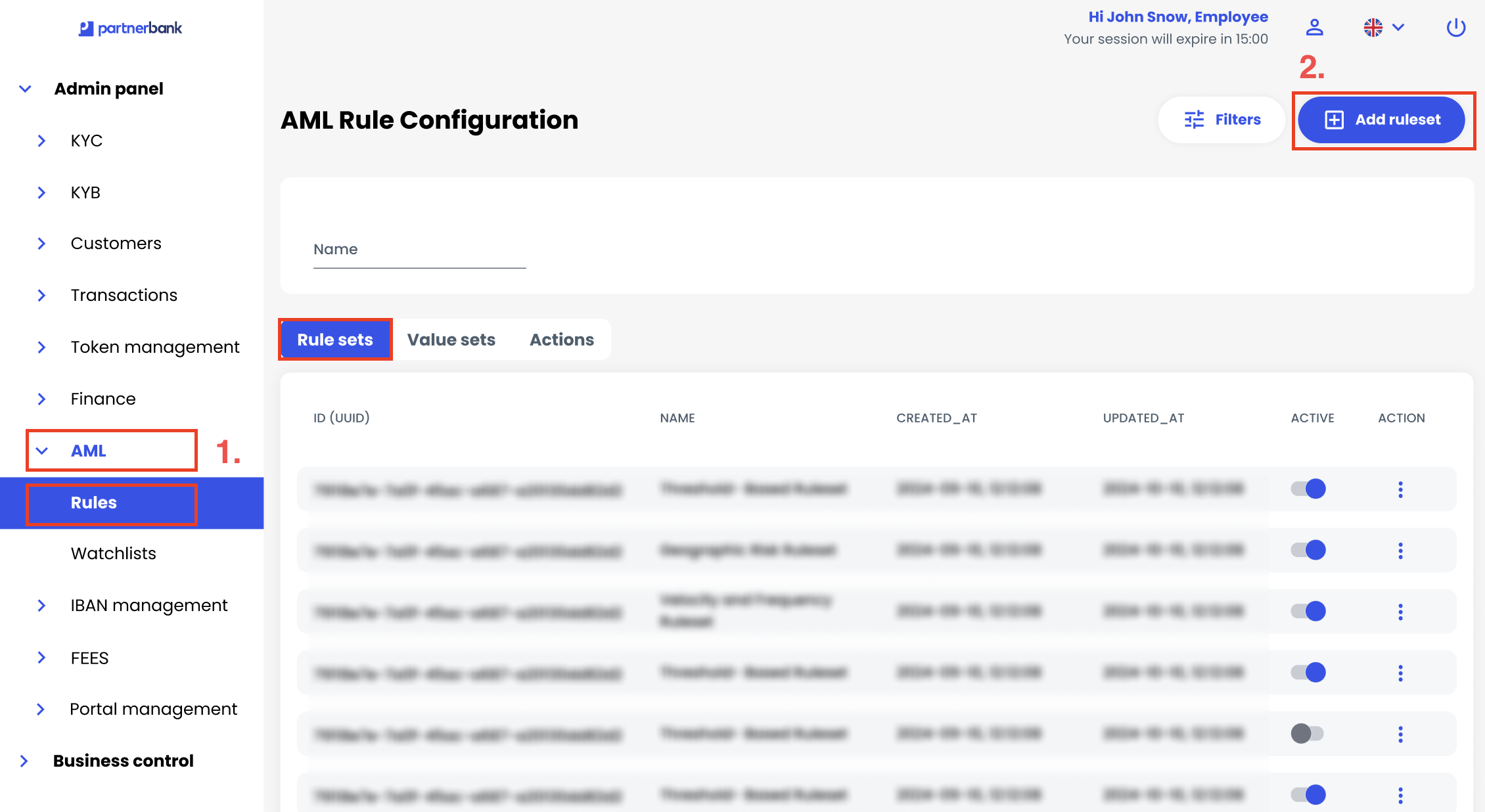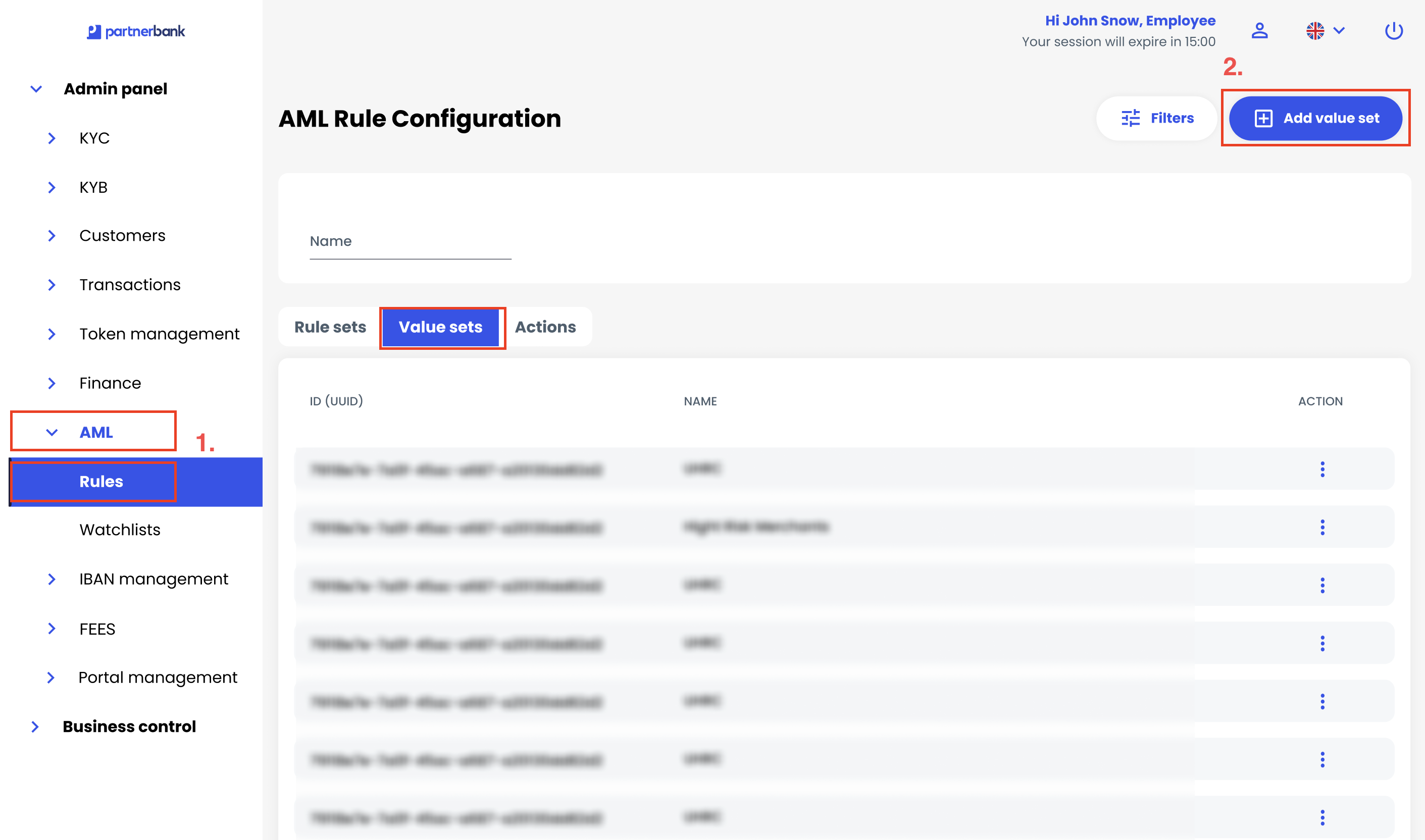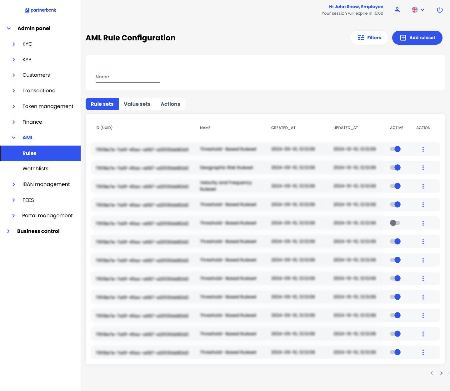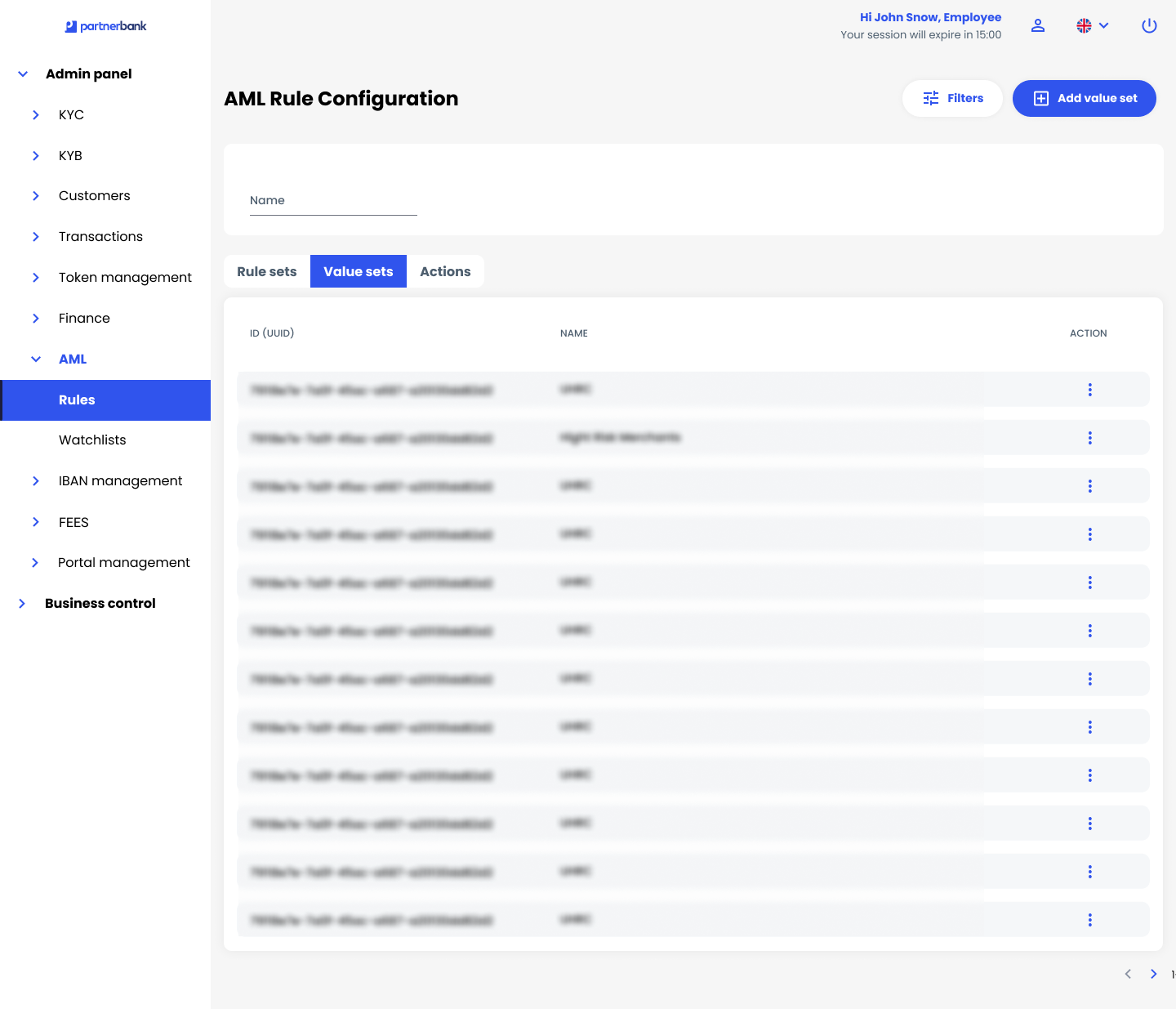This documentation covers the primary processes within the AML configuration module of the partnerbank Admin Panel.