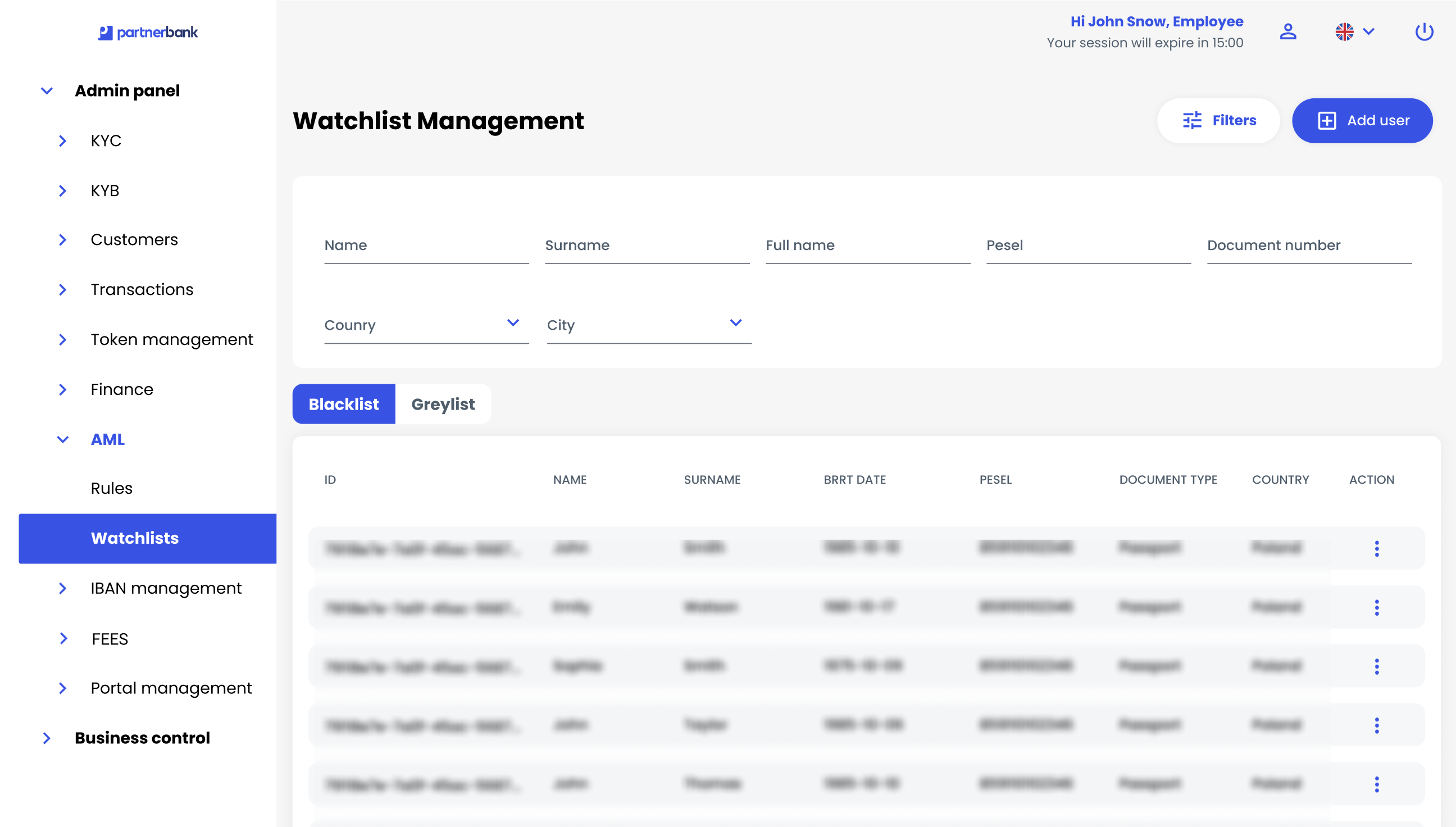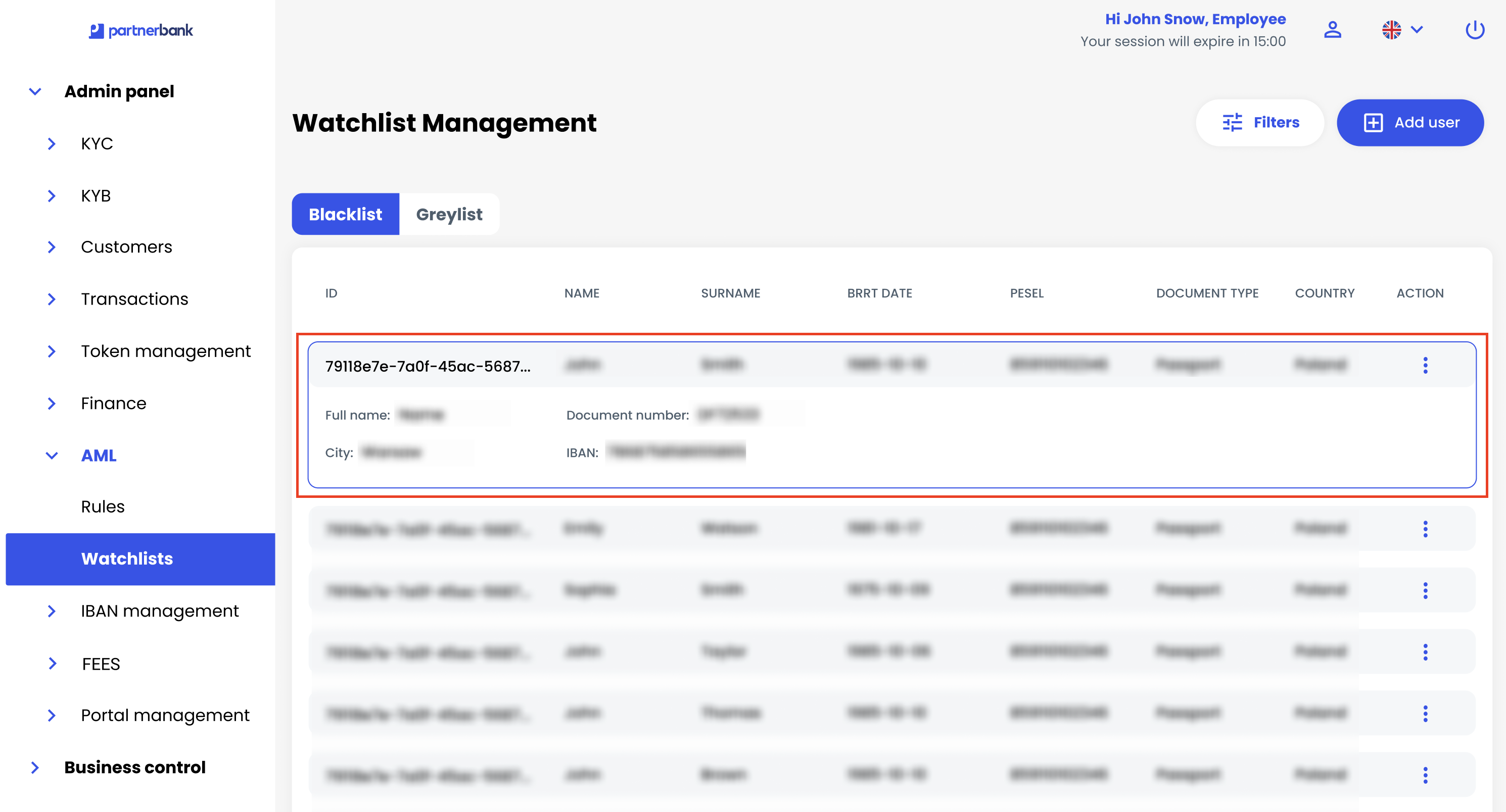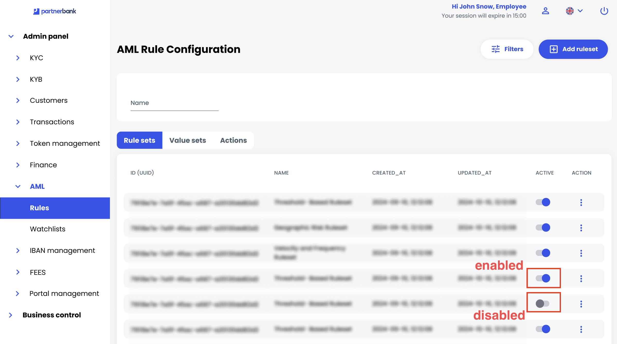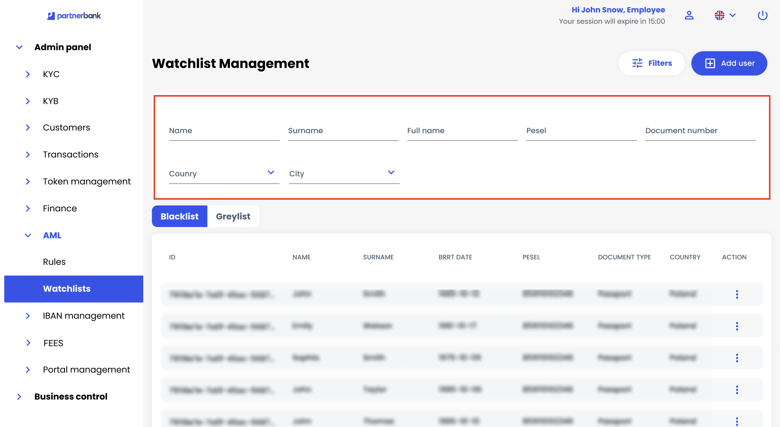 This documentation covers the primary processes within the AML configuration module of the partnerbank Admin Panel.