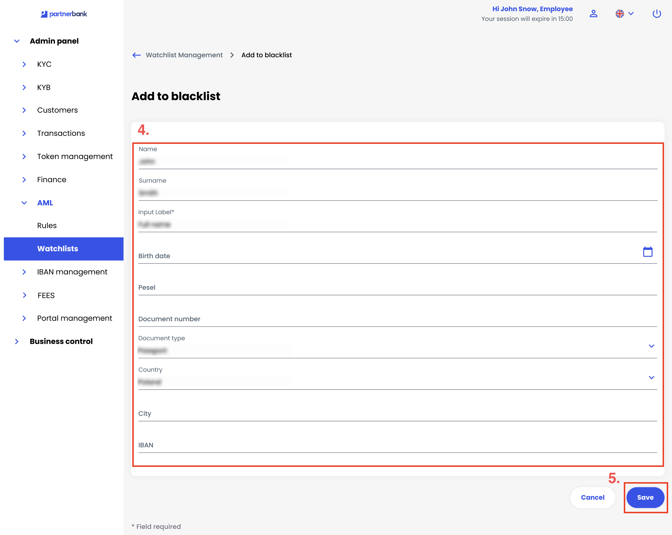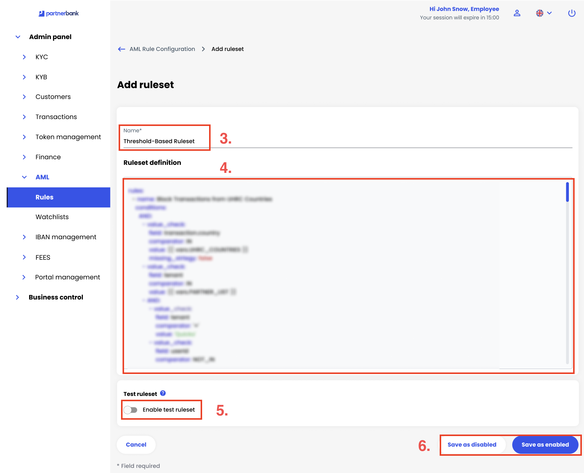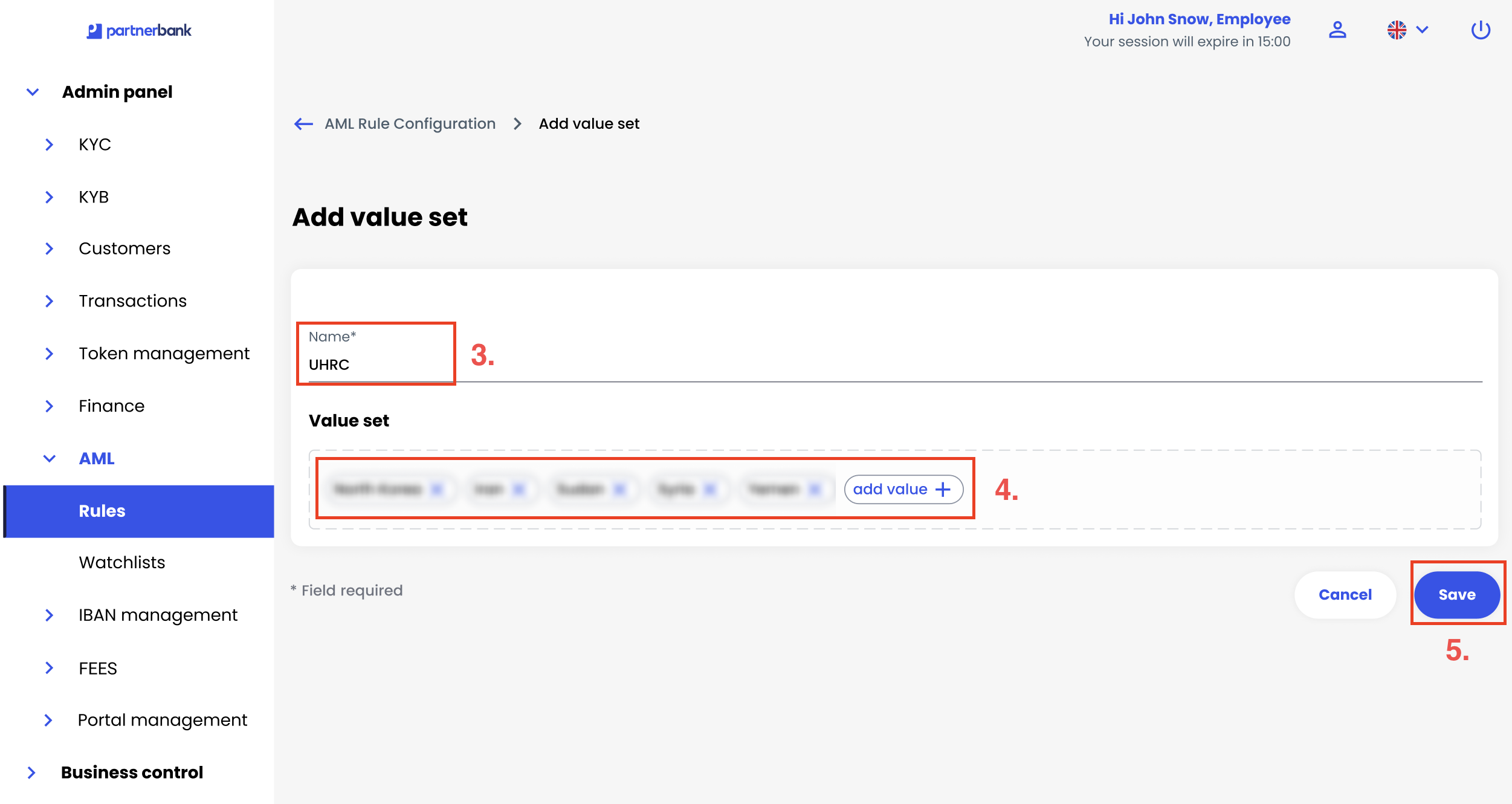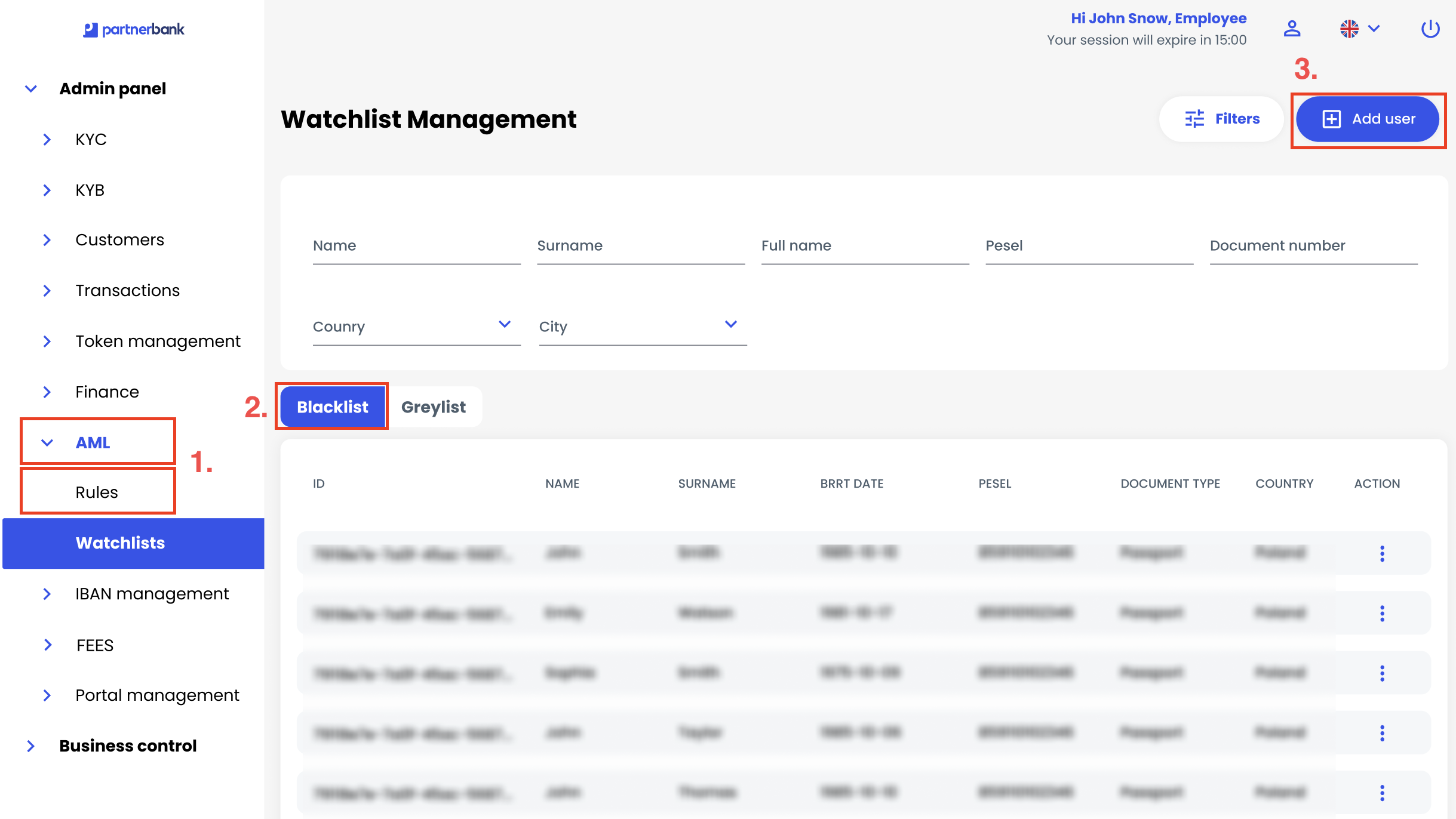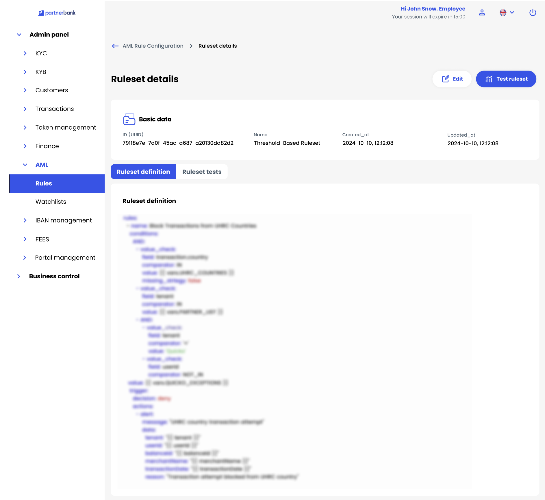 This documentation covers the primary processes within the AML configuration module of the partnerbank Admin Panel.
