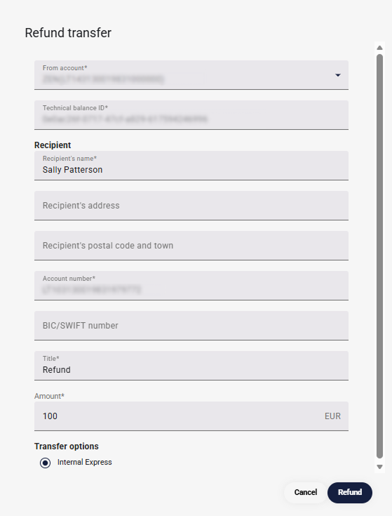 Manual refunds are available once an incoming transfer is rejected.