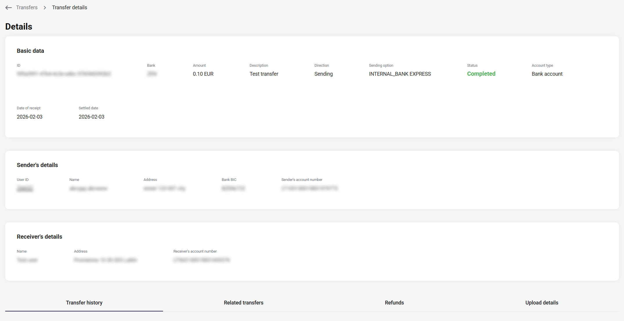 Since a held transfer results in funds being posted to a technical balance, both approval and refunding require a transfer of funds from the technical balance, which will be reflected in the transfer history.