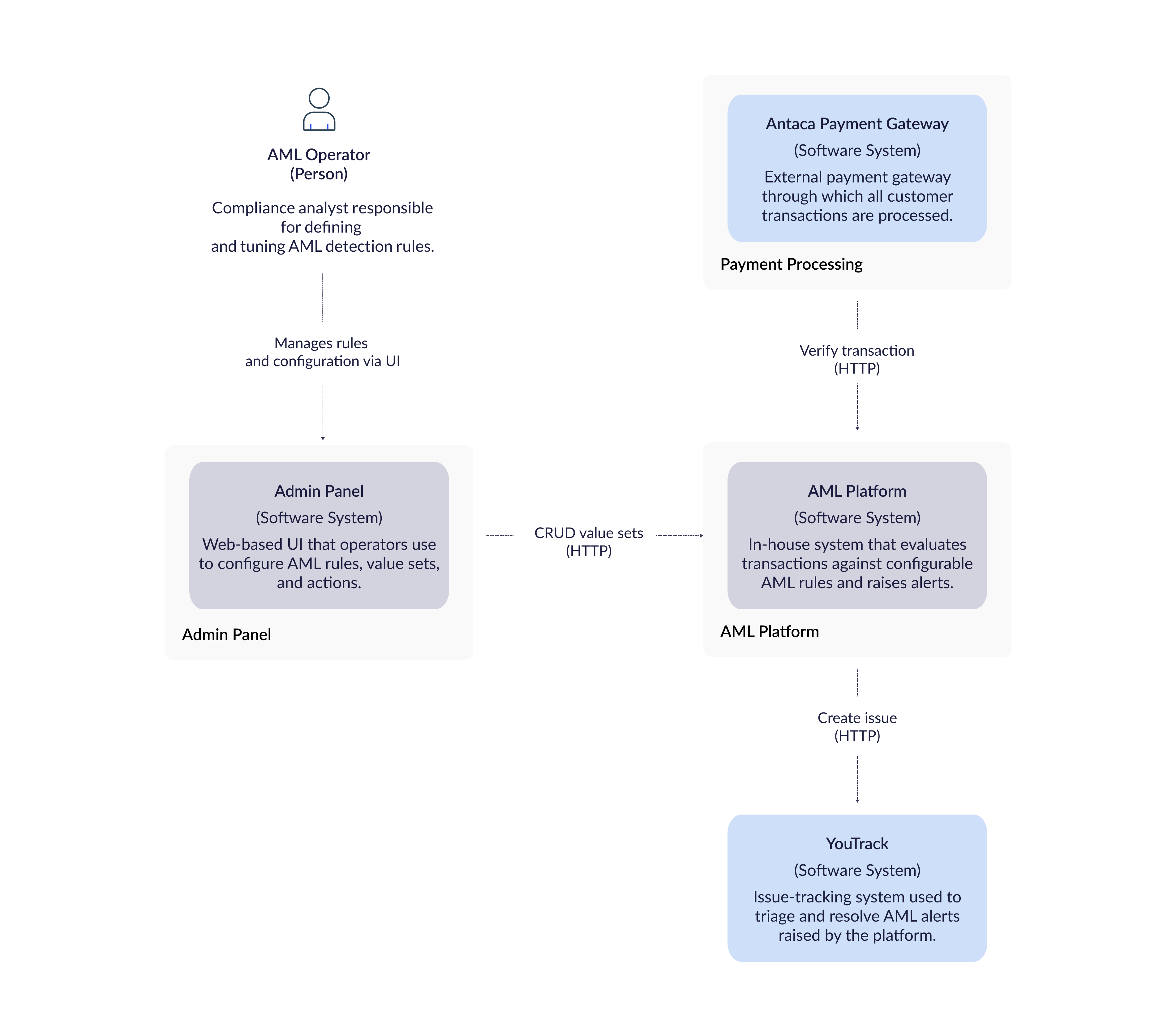 When the AML system receives a request on this endpoint, it begins evaluating the transaction against all rules defined in the system.