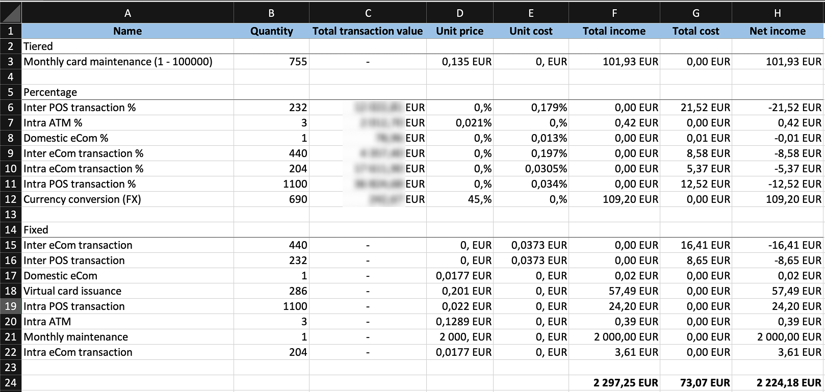 With instant charging, a partner can move transaction fees (their operational costs) to the end-user by charging fees directly on each user transaction (e.g., ATM, card, IBAN).