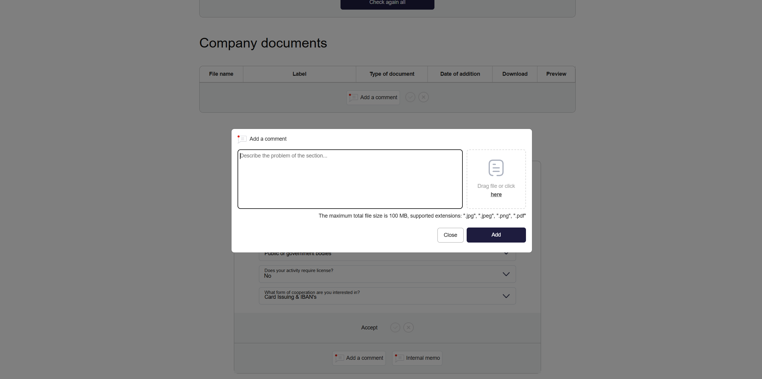 The client has access to the information and attachments provided while filling out the KYB form. This allows them to verify the correctness of the submitted registration data, as well as the information regarding representatives and ultimate beneficial owners (UBO).