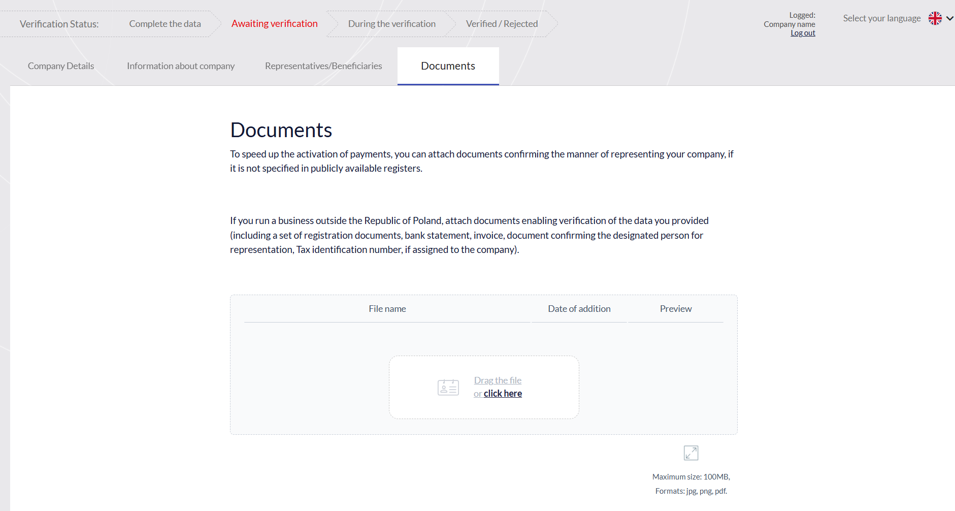 The Customer Panel plays a key role not only during the initial onboarding but also during the so-called "periodic verification." If refreshing the company's data is required after some time, the client may be asked to log into the panel to make the necessary corrections and re-approve the information.