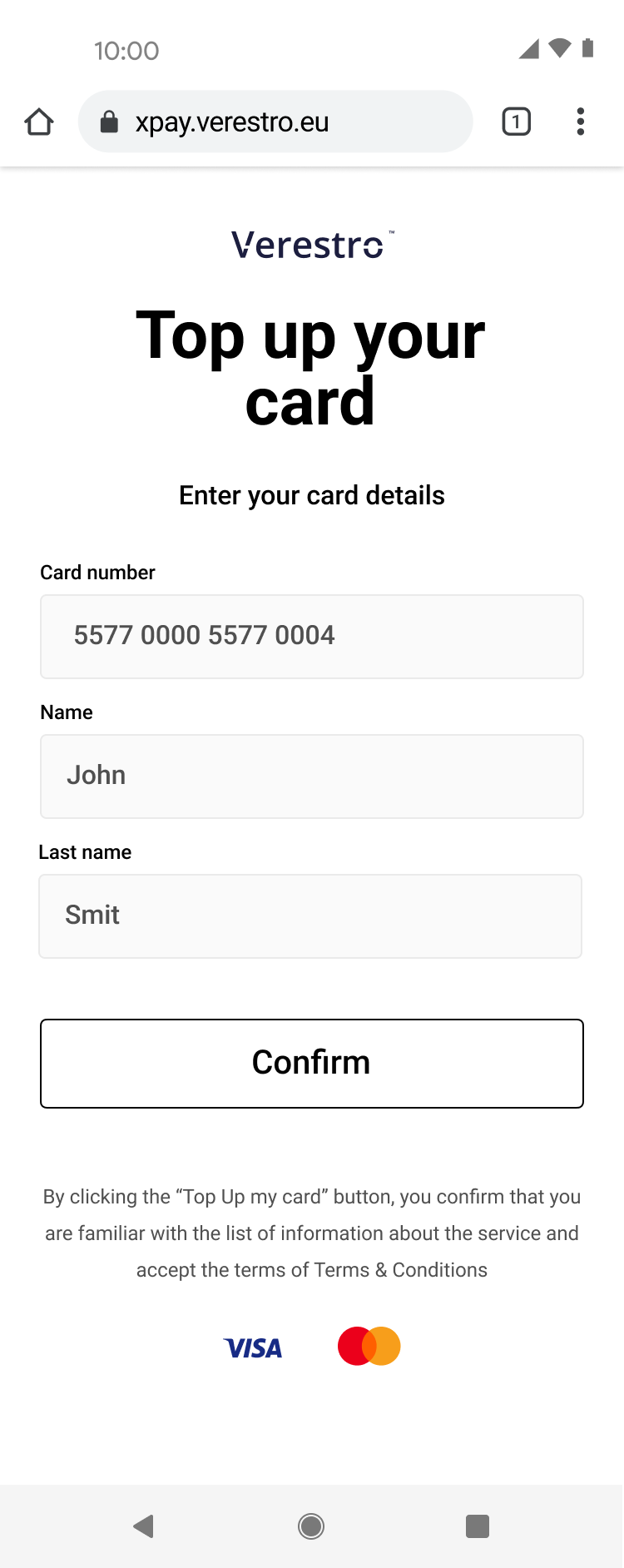 This chapter describes the business functions that can be performed by having a company balance in the Verestro system and using Payout to card. We also present end user default views presented during using the application.