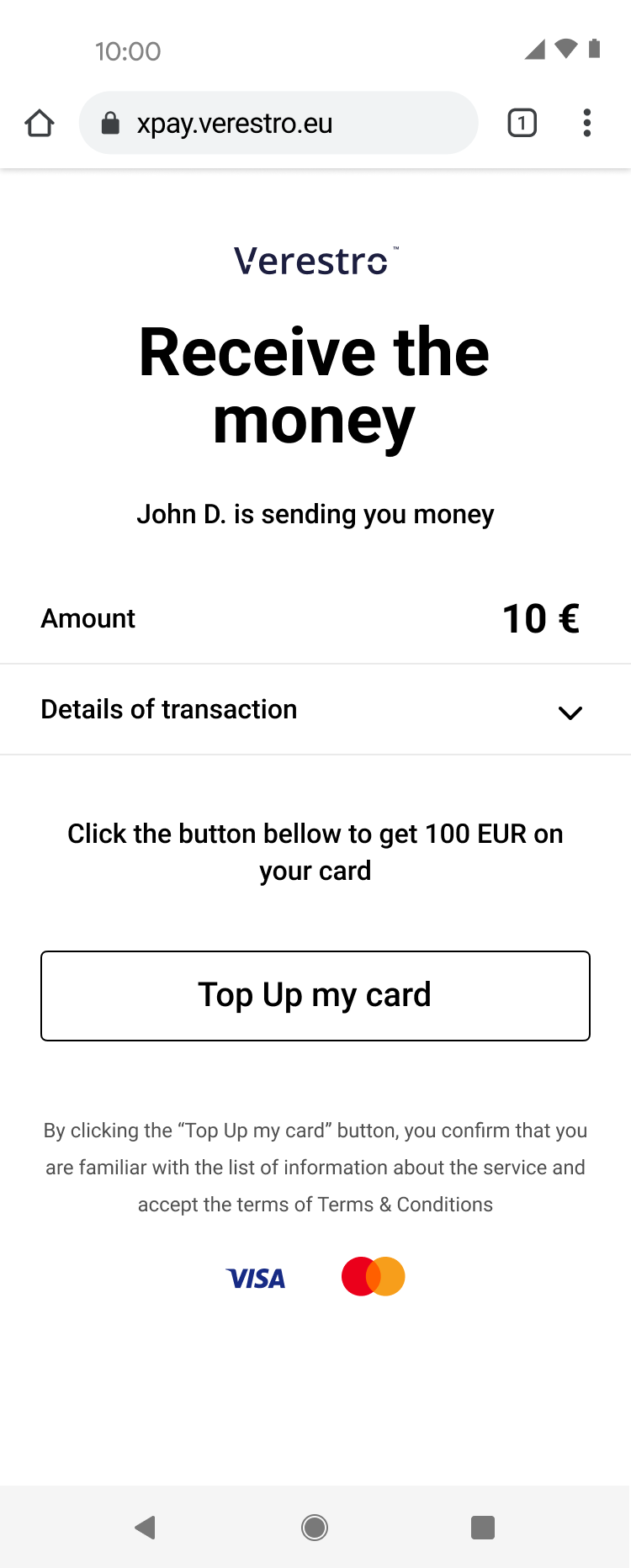 The recipient of a payment link sent by the sender is the beneficiary of the transfer. Upon opening the link, the recipient is redirected to our responsive webview, where he/she can see a message indicating that a specific person intends to transfer a certain amount in a given currency.