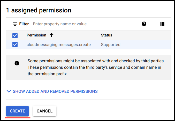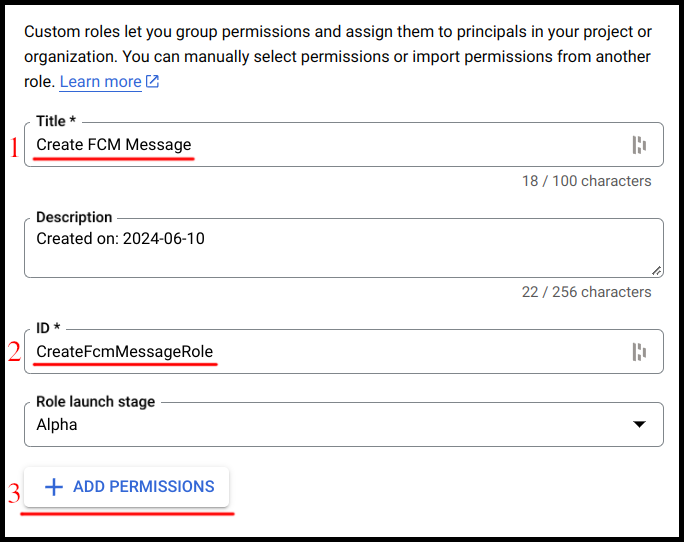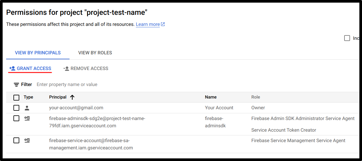 After choosing a role, save the principal access